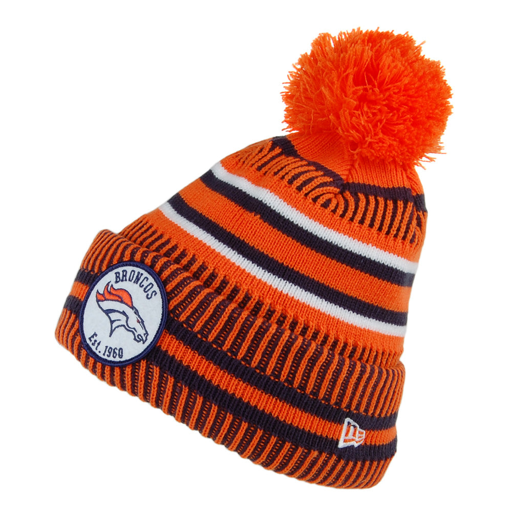 Aquí está el gorro tejido con pompón NFL On Field Denver Broncos de New Era en azul marino-naranja. El beanie rayado de invierno presenta el logo del equipo en un parche cosido al frente. Tiene el logo de New Era bordado en el lateral del sombrero. Hay un parche de NFL cosido en la parte posterior. El pompón en la parte superior se puede cortar si busca un gorro beanie normal, pero tenga en cuenta que no se puede volver a colocar.