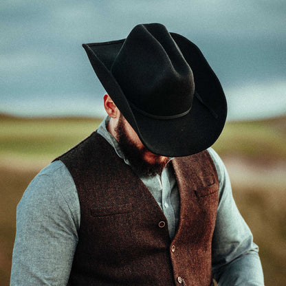 ¡El sombrero de Cowboy del Oeste de Jaxon & James es un todo un clásico! El ala del sombrero cuenta con un alambre oculto alrededor del borde de la misma, por lo que se adapta a la forma deseada. Está hecho de 100% de fieltro de lana y es resistente al agua. El sombrero tiene las siguientes dimensiones: la copa mide 10 cm de alto y el ala mide 9 cm de ancho.