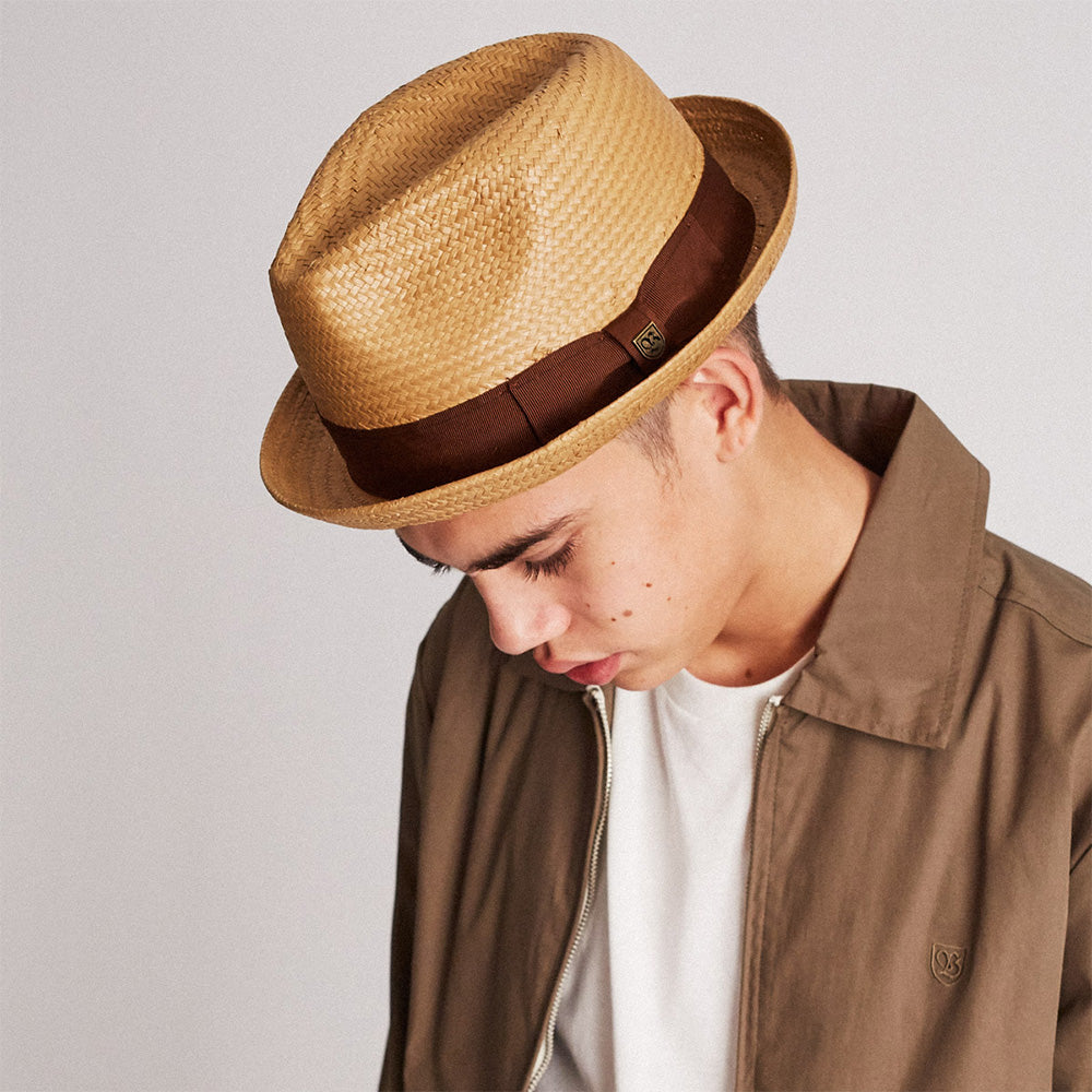 El sombrero de paja Trilby Castor de Brixton en latte es una nueva versión del clásico sombrero de verano de Brixton. Este ligero trilby presenta un ala curva de 4 cm de ancho y una corona de 10,5 cm de altura. Una cinta de sombrero grosgrain rodea la corona y una insignea Brixton se fija al arco. El trilby está completamente forrado con satén y la cinta interior lo hace muy cómodo de llevar.