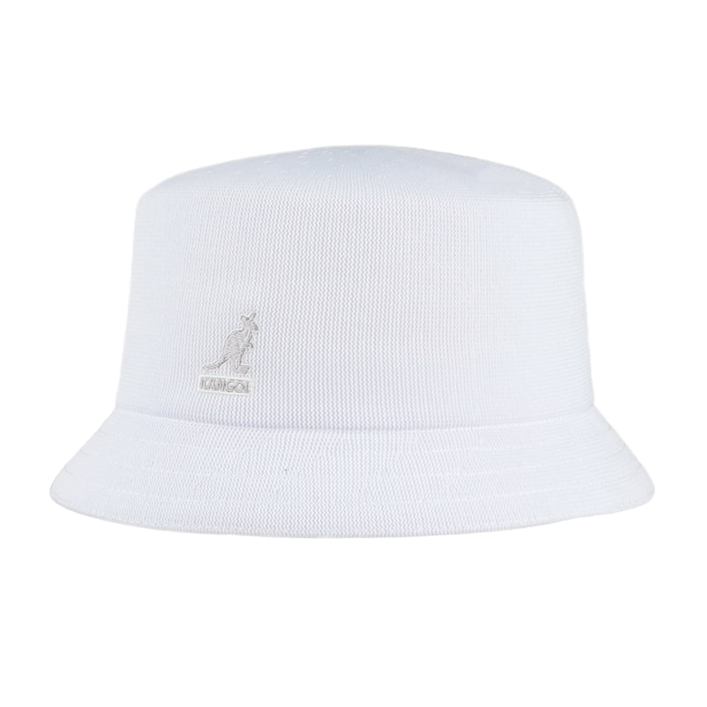 Este es el sombrero de pescador Tropic Bin en blanco de Kangol. Este gran cubo no tiene forro para mayor transpirabilidad y tiene una banda para el sudor para mayor comodidad. Hay un logotipo de Kangol bordado en la parte delantera. Un gran sombrero de pescador para los cálidos días de verano.