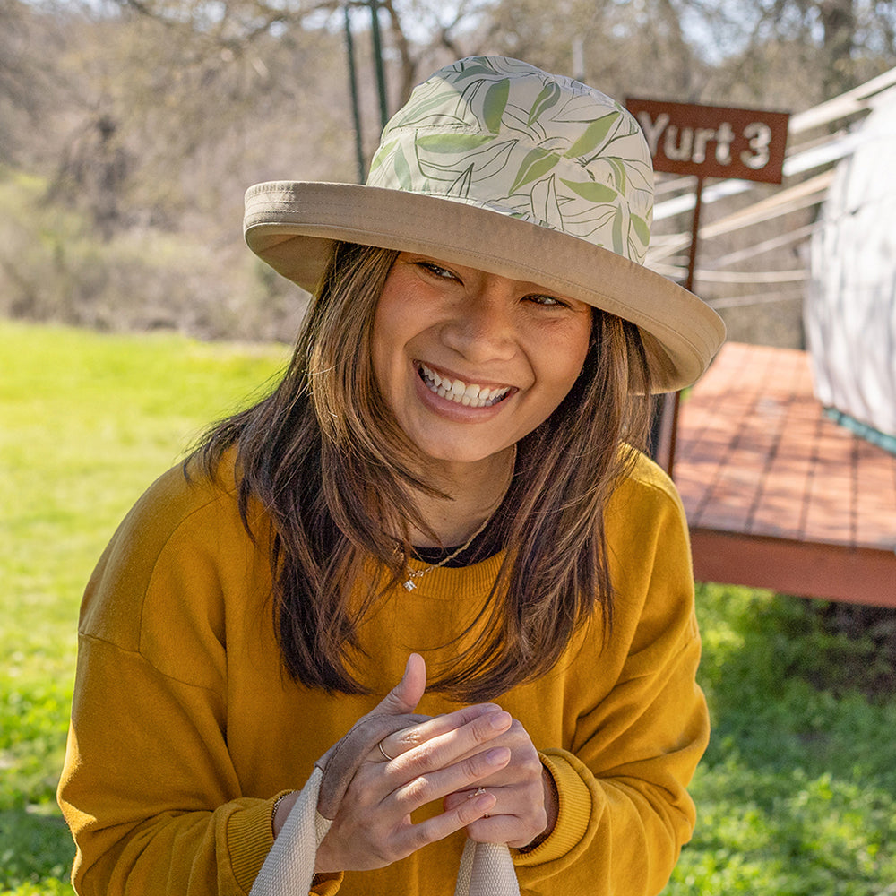 Con un ala de alambre que se ve genial hacia arriba o hacia abajo, el sombrero de sol Campana Natural en marrón claro-multi de Sunday Afternoons es dos sombreros en uno, con un algodón natural/ tejido de poliéster reciclado en el lado sólido y un 100% de poliéster reciclado en el lado de impresión de hoja. Con una clasificación de protección solar UPF 50+ y un acabado repelente al agua duradero sin PFAS, este sombrero de sol le protegerá contra los elementos, lluvia o sol.