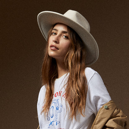 El sombrero Brixton Hats Harper Wool Felt Fedora en color crema está hecho de fieltro de lana rígido. Este elegante sombrero se termina con una cinta de cuero y un pin de Brixton en un lado. La banda interior súper suave cuenta con una correa ajustable de gancho y lazo para un ajuste perfecto. Un fedora hecho para los amantes de la moda.