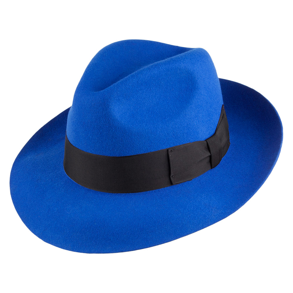 Sombrero Fedora Mayfair de fieltro de lana de Denton - Azul Cobalto