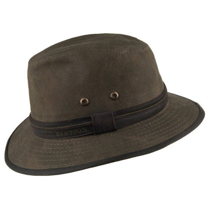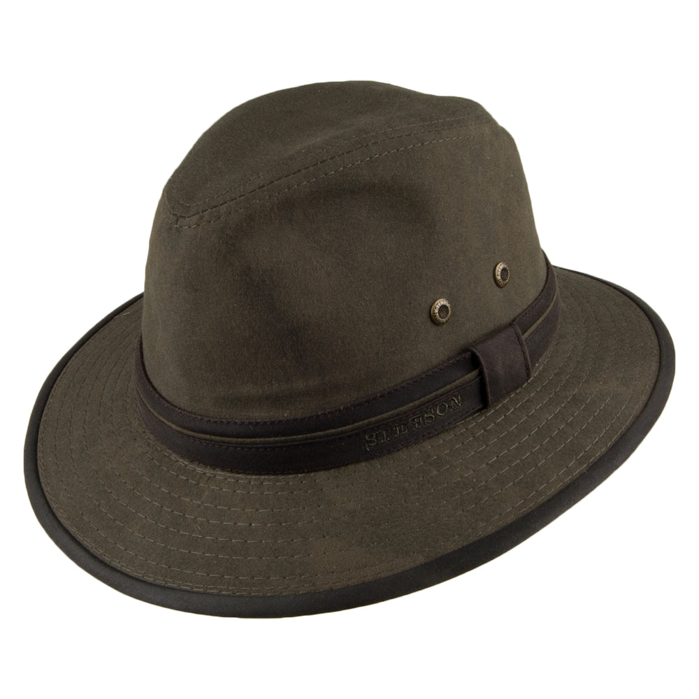 Este es el sombrero Fedora Safari de Stetson en bosque. Está hecho de 100% de algodón, tiene ojales en el lateral para una mayor ventilación y tiene un bordado de la marca en la cinta decorativa de algodón. El ala mide aproximadamente 6 cm de ancho, por lo que proporciona una excelente protección solar y la copa mide unos 11,5 cm de altura.