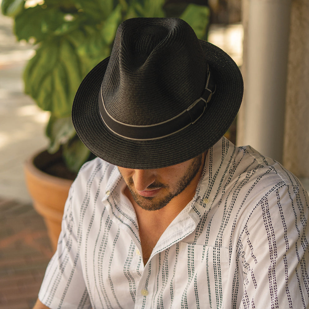 Sombrero Fedora Wyatt de paja toyo Trenza fina de Scala - Negro
