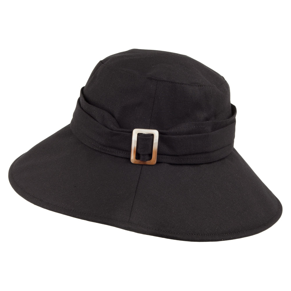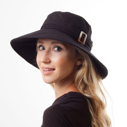 El sombrero Lotus plegable de lino de Sur la tête en color negro es de peso ligero, por lo que es ideal para el verano. Está hecho de la mezcla de lino y algodón y trae una cinta decorativa con una hebilla. Además, cuenta con un cordón ajustable en el interior que permite ajustarlo de manera cómoda a su talla.
