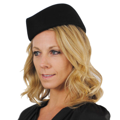 El sombrero Pill-box azafata de vuelo de Sur la tête en negro se ha convertido en unos de los sombreros icónicos más solicitados. Está hecho de 100% de lana y la copa ovalada tiene una dimensión de 7,5 cm de alto.