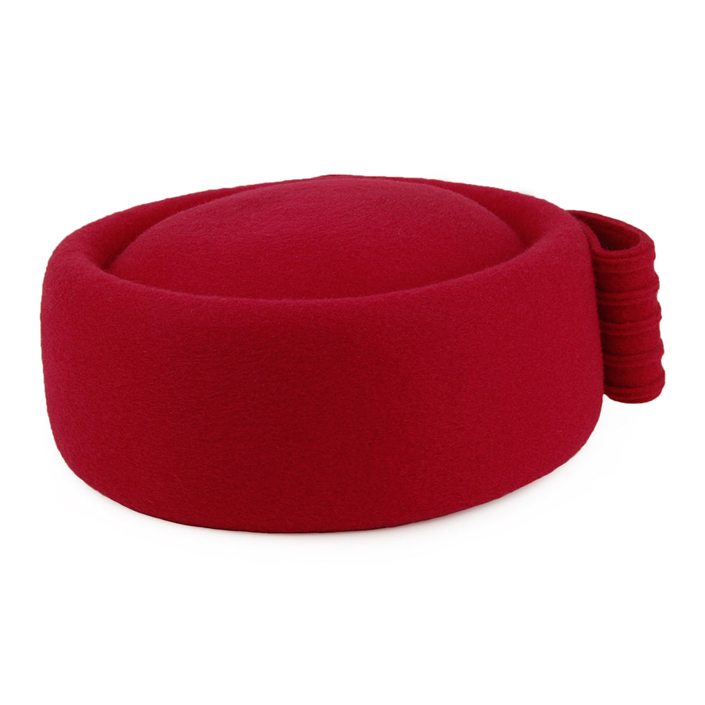 Sombrero Pillbox Jackie O con lazo decorativo de lana de Whiteley - Rojo