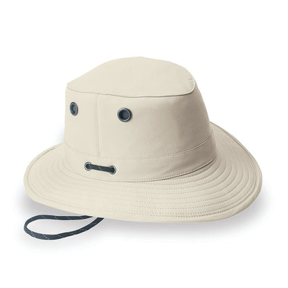 El nuevo LT5B en color piedra de Tilley Hats está fabricado con 93% nailon y 7% spandex con un acabado duradero repelente al agua y a las manchas que dura hasta 70 lavadas. Ofrece protección solar UPF50 +. El sombrero es transpirable, superligero, de secado rápido, plegable y aplastable.