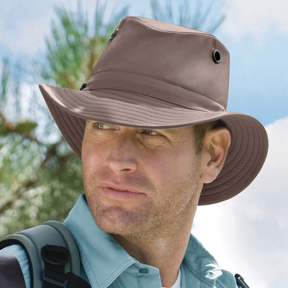 El nuevo LT5B en color gris topo de Tilley Hats está fabricado con 93% nailon y 7% spandex con un acabado duradero repelente al agua y a las manchas que dura hasta 70 lavadas. Ofrece protección solar UPF50 +. El sombrero es transpirable, superligero, de secado rápido, plegable y aplastable.
