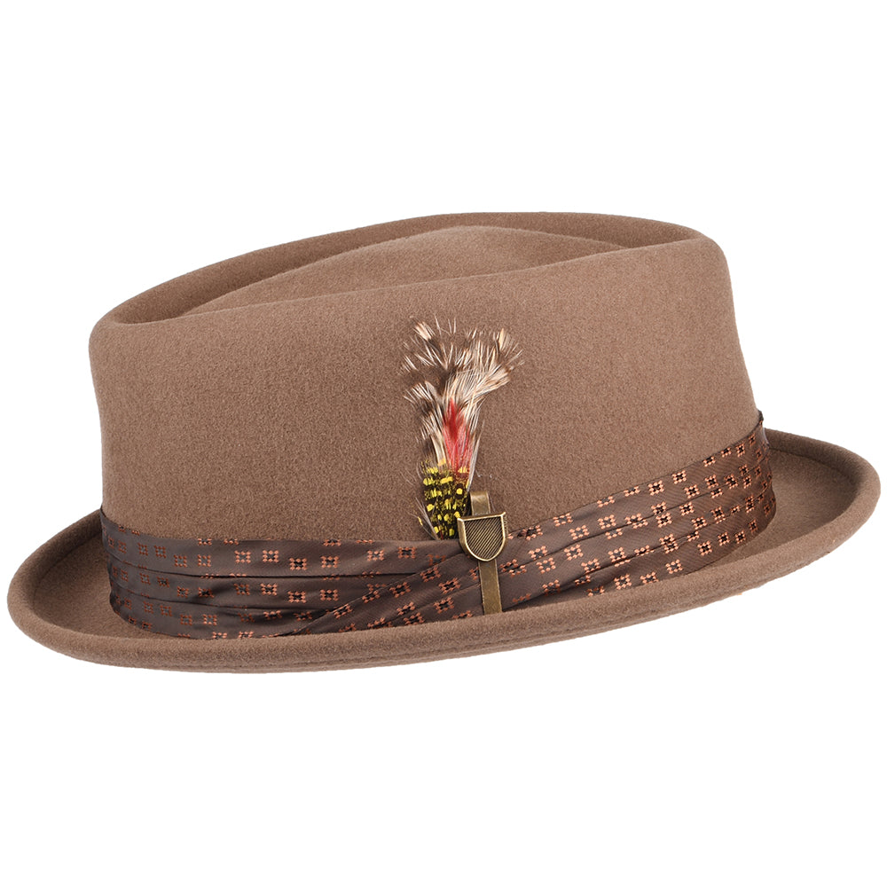 Sombrero Pork Pie Stout de fieltro de lana de Brixton - Camel