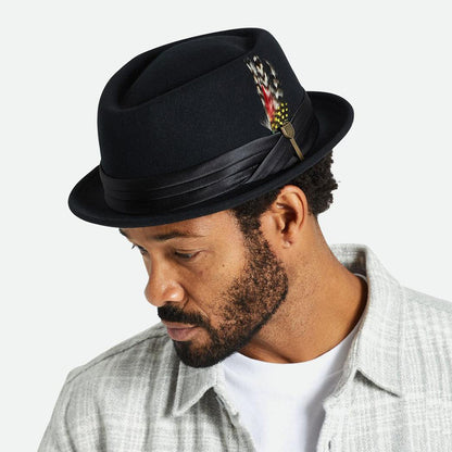 Sombrero Pork Pie Stout de fieltro de lana de Brixton - Negro