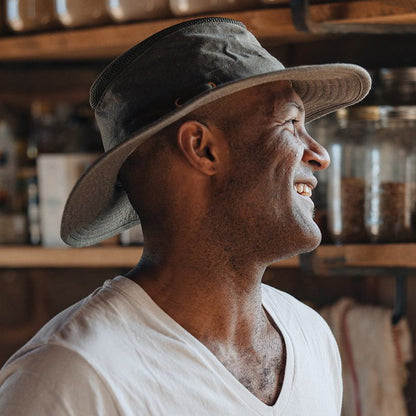 El Tilley TMH55 Mash Up Cotton & Sun Hat en marrón es un sombrero para el sol adecuado para el aire libre. El sombrero está confeccionado con un tejido nuevo exclusivo que utiliza hilo reciclado. Este sombrero repele el agua y bloquea los rayos UV. La corona está ventilada para garantizar que obtenga la mayor ventilación posible. Un cordón ajustable para la barbilla asegura que siempre permanezca seguro en tu cabeza.