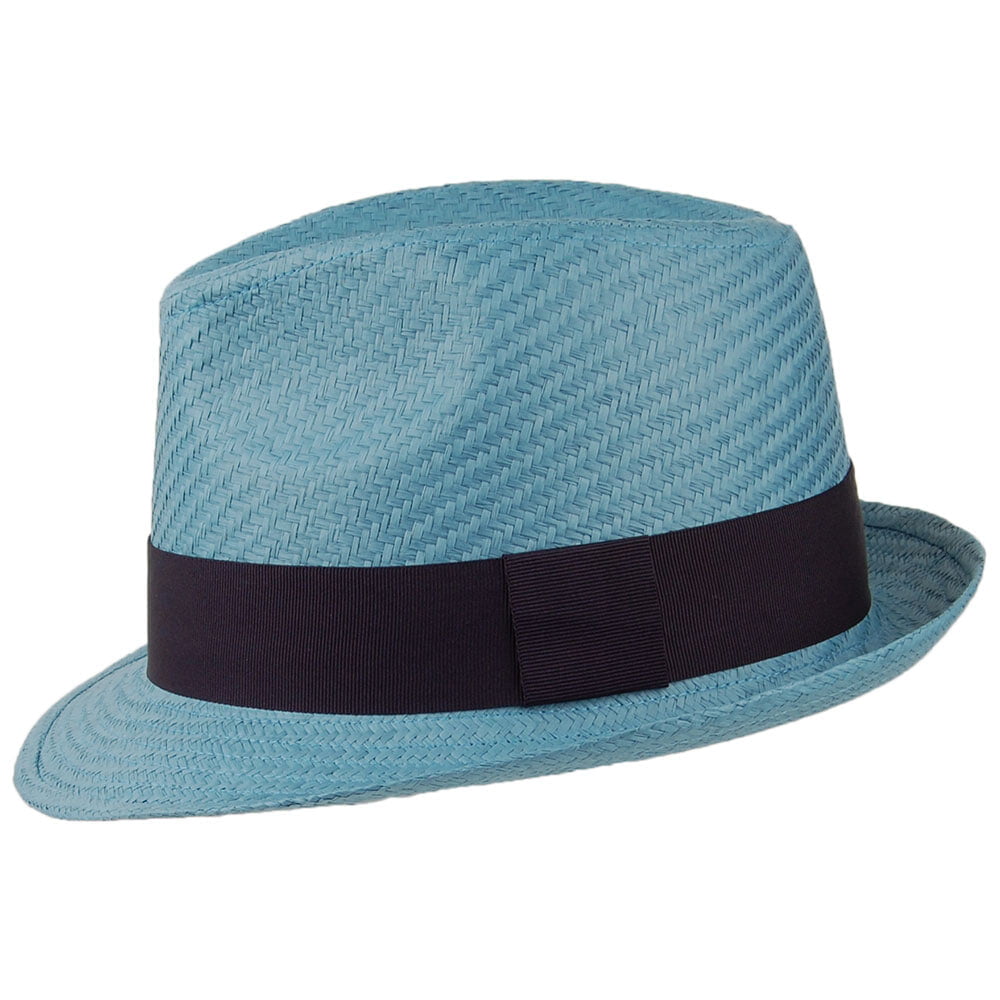 Este es el sombrero Trilby de paja de Failsworth en azul. El ala de este gran trilby está enrollada hacia abajo en la parte frontal y enrollada hacia arriba en la parte de atrás. El sombrero está decorado con una cinta delgada. El interior está forrado con algodón y también con una cinta de algodón. ¡Un gran trilby clásico para el verano!