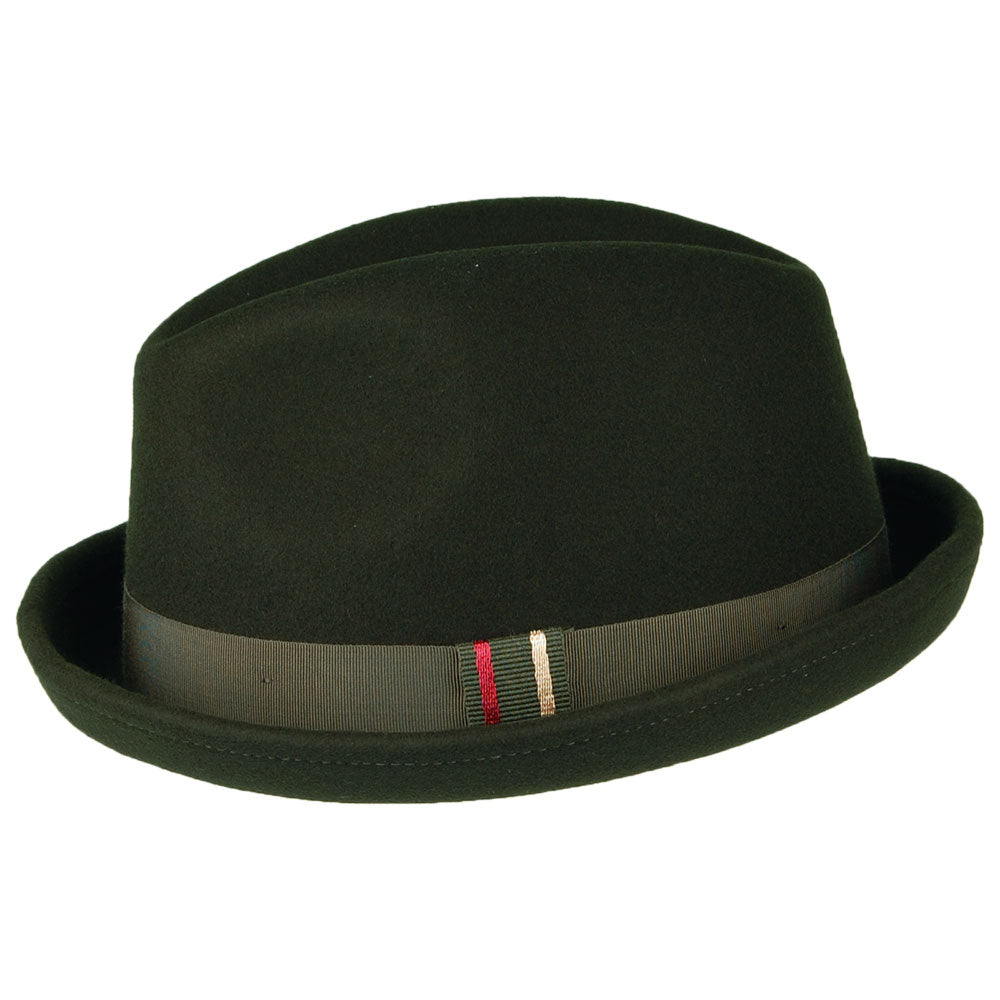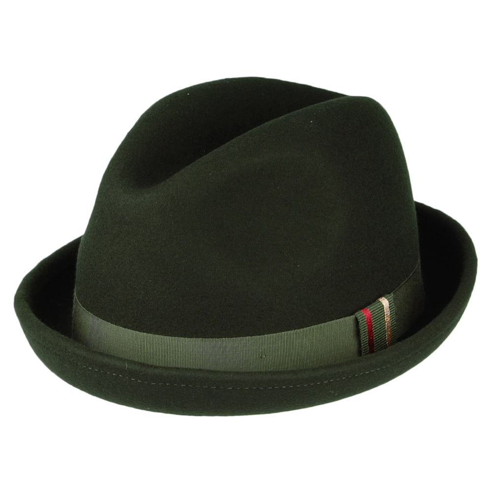 Sombrero Trilby New Orleans de fieltro de lana de Christys - Verde Musgo