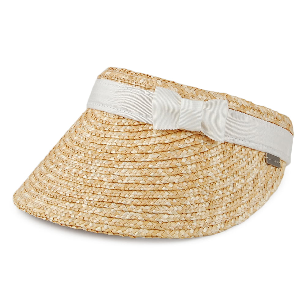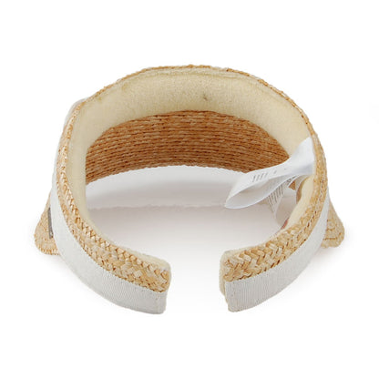 La visera Dunewood de Betmar en natural-blanco es hermosa y perfecta para el verano. Trae una cinta de grogrén, con un bonito lazo en el lado izquierdo de la cinta. Tiene una cinta interior de felpa que le aporta una mayor comodidad. Esta visera Dunewood es el complemento perfecto cualquier conjunto veraniego.
